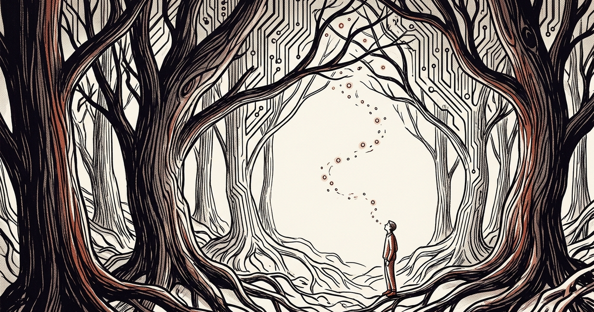 原版黑暗森林假設的是文明躲避獵人——其他可能摧毀它們的文明。但在認知黑暗森林中,最危險的行為者不是你的同儕,而是森林本身。